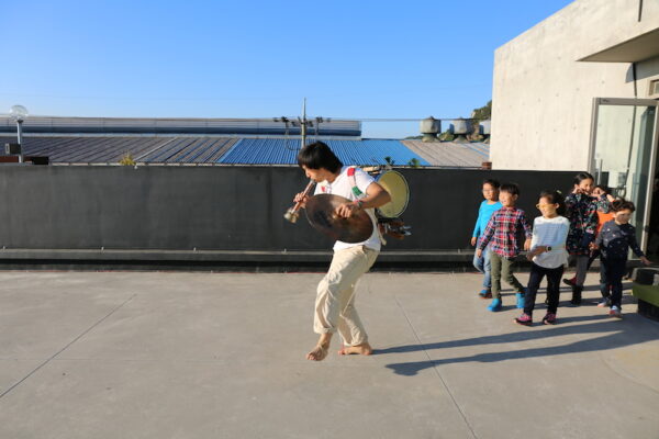 Through my performance, I want to connect the ideas of soundart and street performances. On the soundart aspect, I want to open your ears fully using physical characters of sound and music. At the same time, I try to show the notion of my body. During my performance, I put a drum on my back. To beat the drum by my foot through the string, I look like dancing even though I am not intend to dance. I think I can say that the drum is making me dancing. In this point, I want to think where is my controlling system? who is the boss of my body? Besides, I am influenced by traditional musicians and musics on the street, both in the way of their way of life in their society and in the way of the beautiful music. All of them are some kind of out-siders who consequently supported the society from out side of the law. And they are professional musicians who are totally independent of anything, the only way they to improve their lives is to improve their music. In this way, their music is beautiful.