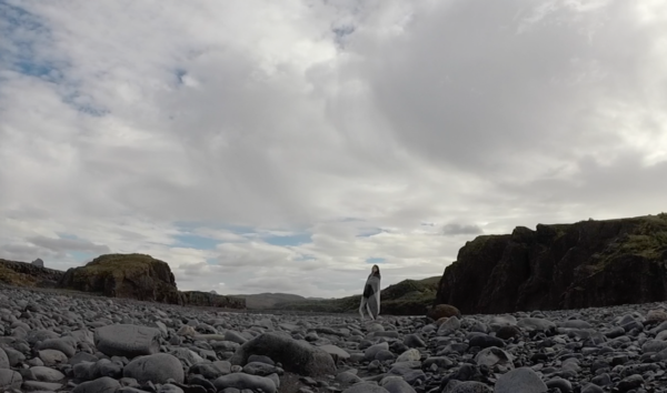 “Rake” (2015) a hypnotizing projection loop by Liberovskaya of an extreme close-up of of the boundary between sand and water through the tines of a rake. The raked sand forms constantly changing organic shapes endlessly rising from the ground and crumbling while different bodies (shells, small jelly fish, stones…) get caught and released in the path of the rake’s progresses (created during a residency at iii/Studio Loos, Den Haag, Holland).