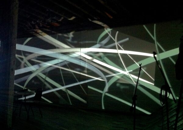 A poem to the skin. An image distorted in space and time – visceral, spatial, dynamic, subtle, fragile, poetic. Blades of grass crawling along a wall into a corner, a single line lingering, seemingly floating patches of light – Ursula Scherrer will envelope the space and her own body with her projections like the skin folds around the flesh. Nao Nishihara is vibrating the space inside and outside of your skin with electric sounds.