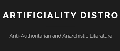 Artificiality Distro is oriented towards producing & distributing zines, pamphlets, and other grassroots autonomous media that promote the anarchistic critique of state, capital, nationalism, organized religion, colonialism/imperialism, and any other forms of authoritarianism, including all social relationships based upon hierarchy. We promote marginalized perspectives and have a strong emphasis towards green/eco-anarchist viewpoints.