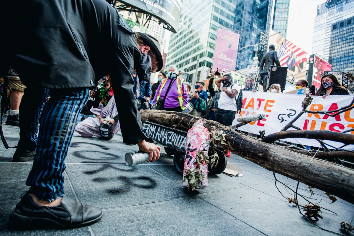 This public art performance is a direct response to the current crime against humanity happening in the Amazon Rainforest committed by corporations and the Brazilian government. The durational performance presented by AnarkoArtLab involves two artists, Adriana Varella and Amy Gillian Wilson, ritualistically dragging a burnt and smoking tree throughout New York City. Are we all responsible for this? Are we seeking a parallel world? Can we even imagine what a solution could be? How we can all solve this together will be suggested in the end of the performance.