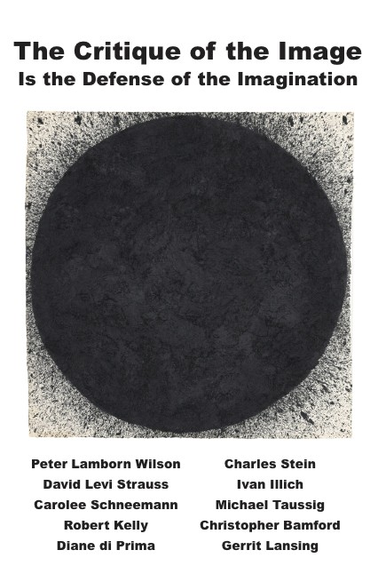 Essays on the politics of the image, with contributions from Peter Lamborn Wilson, David Levi Strauss, Carolee Schneemann, Robert Kelly, Diane Di Prima, Charles Stein, Ivan Illich, Michael Taussig, Christopher Bamford, and Gerrit Lansing. “Many of these texts bear witness to something like a crisis in the nature and function of the image in our time due to the wild acceleration of image-production and dissemination through digital media; but our common concern with the relation between image and magic and image and media notwithstanding, the essays are not assembled under a single attitude, other than their concern with images; and certainly not because they represent an overarching generalization about what it is possible to think and say on the subject. They exhibit something like a welter of underground connections that are rather to be explored than summed up. It is hoped that their presentation together will elicit a rich and mutually resonating field of reflection that might enable us not only to see images and their efficacy afresh, but perhaps most urgently, to see through them: to find their virtues and powers as essential to life, but fraught with dangerous exigencies.”
