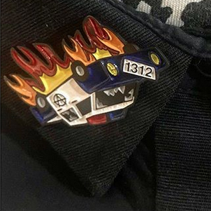 Burning Cop Car Enamel Pin – $12
