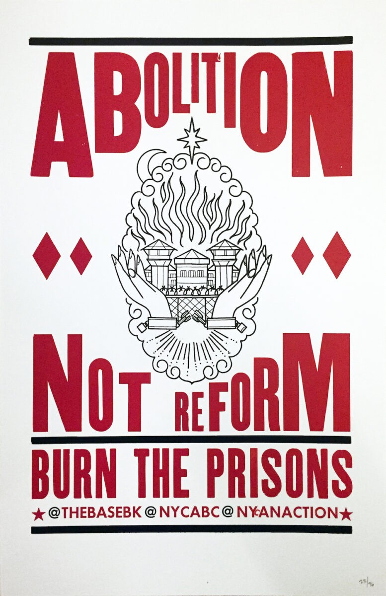 It’s no secret that we deplore prisons and the bootlicking that goes into trying to make reforms to them. These amazing posters are letter-pressed, in a print run limited to 131 (2 proofs were also printed), each numbered. The white variation is limited to 96 pieces and will not be reprinted. Due to the inherent nature of letter-press, the color of the text is uniform, though opacity varies from poster to poster. Thanks to Wasp Print for the layout and help with printing that made these possible, and to The Base and NYC Anarchist Action, with whom funds raised from these posters will be split. The poster measures 13″ by 20″ and will ship in a poster tube. Shipping within the continental United States is included in the price of this poster (include your address in the notes for the sale).