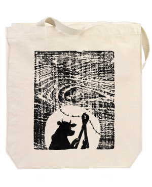 Sue Coe’s advocacy of animal rights is unmatched in its eloquence, forcefulness, and lasting impact. Now you can show your commitment to the cause of animal rights with this capacious, hard-wearing tote featuring an original illustration from The Animals’ Vegan Manifesto. Printed black on natural, 100% recycled cotton. Reverse side sports the OR logo. Measurements: 13″w x 14″h x 3″d